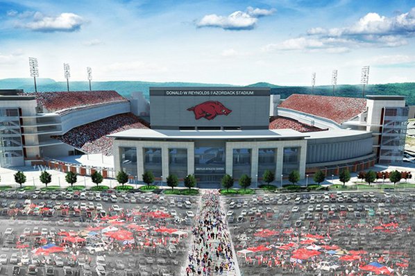 Razorback Stadium, 2010s ← Previous Next → Razorback Stadium’s north end zone as it appears in another rendering released by the university after expansion was approved in June 2016.