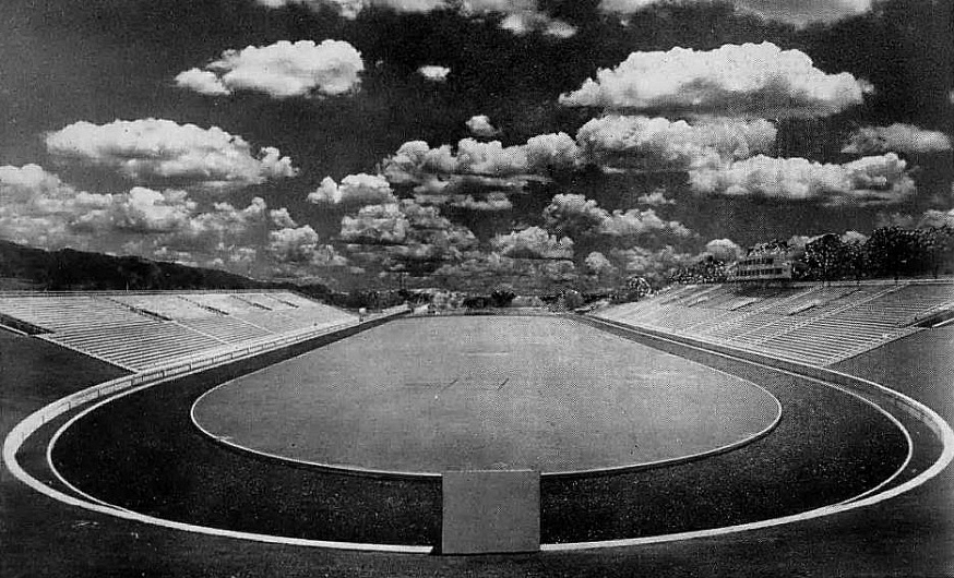 Razorback Stadium, 1940s ← Previous Next → Looking south in 1940 from the north endonze of Bailey Stadium.