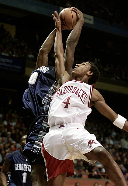 Arkansas returned to the NCAA Tournament in 2001, but fell to Georgetown in the first round. The game ended on a controversial call from officials, who ruled the Hoyas beat the buzzer on a last-second layup. The disappointment in the postseason precipitated a frustrating campaign in 2002 that culminated in the firing of head coach Nolan Richardson.