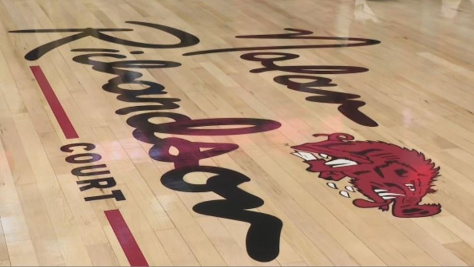 Nolan Richardson was honored before the 2020 season when the court inside Bud Walton Arena was renamed in his honor. His signature graces the hardwood and is accompanied by the famed slobbering hog — en emblem fans had been mourning since its removal from center-court in 2010.