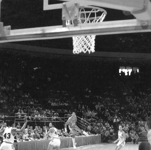On March 14, 1981, xxx teams went down in dramatic fashion. BYU knocked off xxx when Danny Ainge drove the length of the court in xxx seconds for the game-winning layup. xxx knocked off No. xxx xxx while Kansas State stunned No. xxx with a baseline buzzer beater from Rolondo Blackmon. But Arkansas-Lousville tops them all. With the Hogs down xxx and inbounding under their own goal, U.S. Reed dribbled to midcourt hounded by two Cardinals. Just as Reed reached the scorer’s table, he launched a xxx-foot bomb with xxx seconds left on the clock. The buzzer sounded with the ball sailing into the rafters before emphatically splashing into the net. Lousville was devestated; players collapsed and cheerleaders openlly wept. Arkansas players and coaches swarmed the court in jubilation. Arkansas had knocked out the defending champions and headed to its first xxx since xxx.
