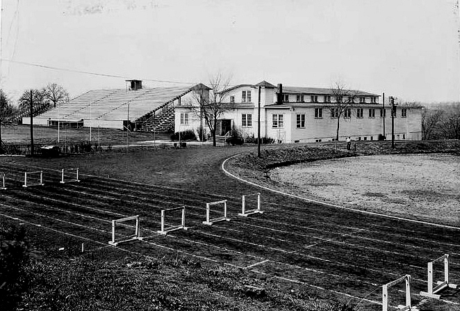 With help from from the business community, Schmidt transformed a former automobile showroom and garage into a field house. Inside was a hardwood floor, an office, showers, lockers, equipment and seating for 1,000 spectators. The make-shift gym was on the west side of campus, near Garland Street, and adjacent to Razorback Field (the original football field). The area, just north of the current Fine Arts Center, served as the school’s defacto sports complex, and included tennis and volleyball courts, a quarter-mile track and a baseball field.