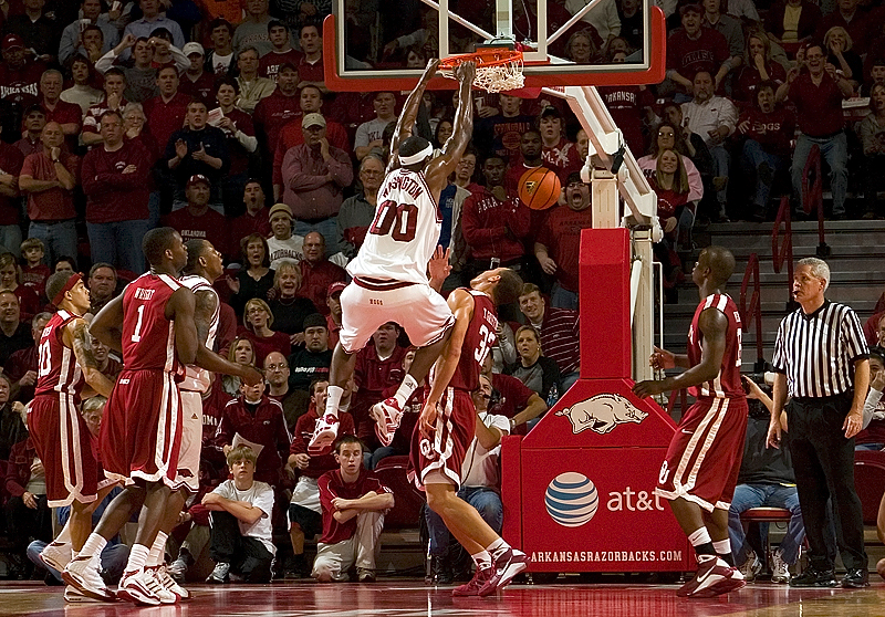 Arkansas opened the 2008-09 season on a tear, toppling No. 4 Oklahoma and future No. 1 overall pick Blake Griffin. Mike Washington (00) matched Griffin’s star-power, tallying 24 points and 11 rebounds while Courtney Fortson fell two rebounds shy of recording a triple double.