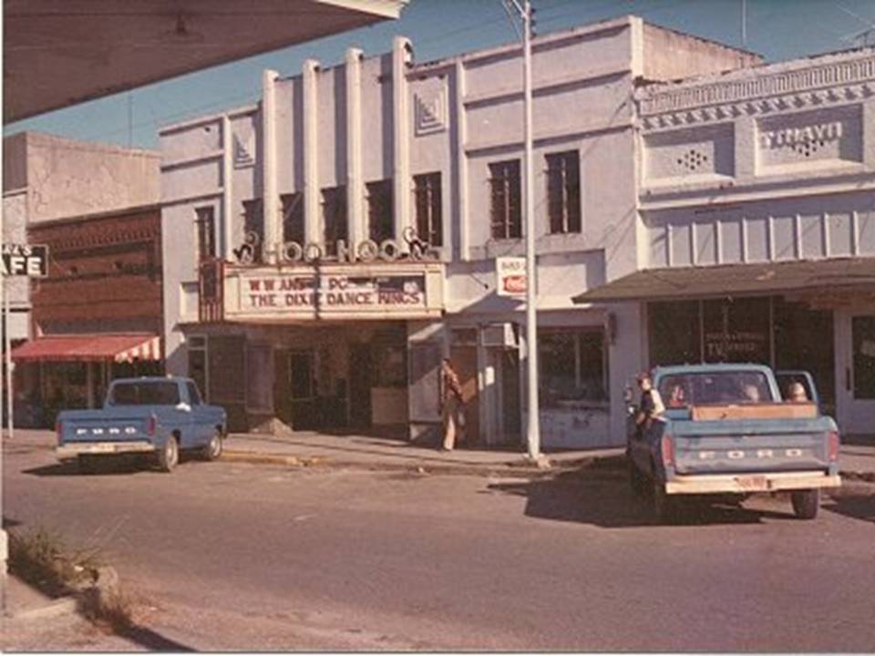 Hoo-Hoo Theater, 1920s-???? Still in operation in 1975, the Hoo-Hoo appears to have been playing “The Dixie Dance Kings” that day, per the marquee. Image via Remember in Gurdon.